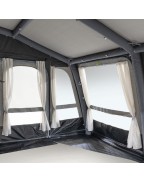 Le auvent grande air all-season 390 est entouré de fenêtres vous apportant une belle luminosité dans votre intérieur et vous permettra d'avoir une belle vue extérieure. Toutes les fenêtres sont équipées de rideaux, cela vous apportera des moments d'intimité à l'abri des regards indiscrets.
